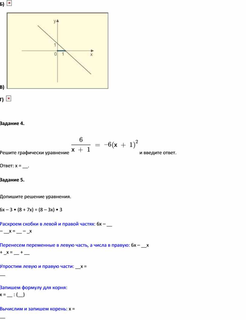 Раскроем скобки в левой и правой частях: 6x – __ – __x = __ – _x