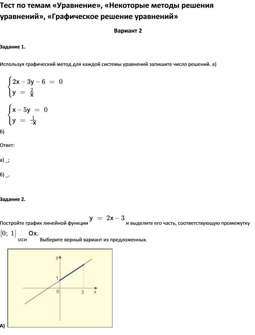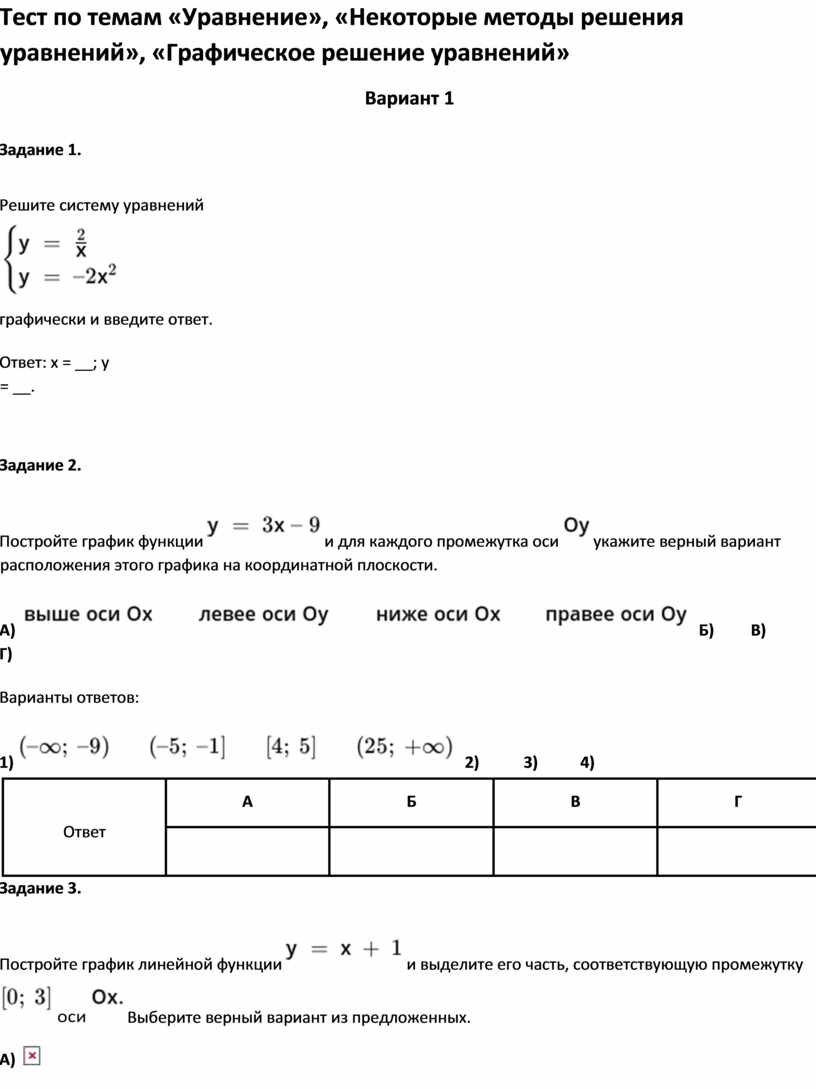 Тест по темам «Уравнение», «Некоторые методы решения уравнений», «Графическое решение уравнений»