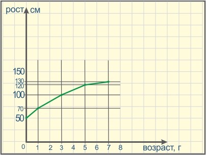 г) на сколько увеличился рост Вовы с 4–го по 8–ой годы.
