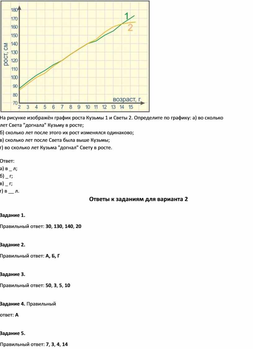 г) во сколько лет Кузьма "догнал" Свету в росте.