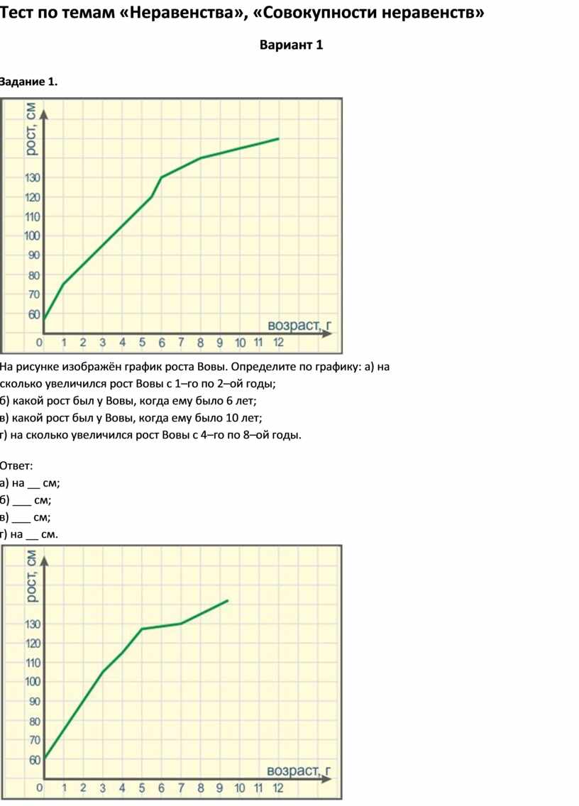 в) какой рост был у Вовы, когда ему было 10 лет;