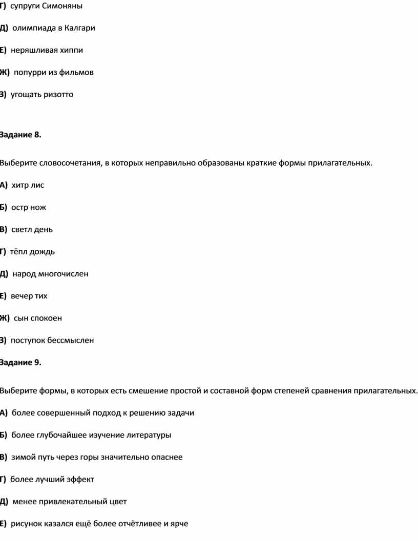 Выберите словосочетания, в которых неправильно образованы краткие формы прилагательных.