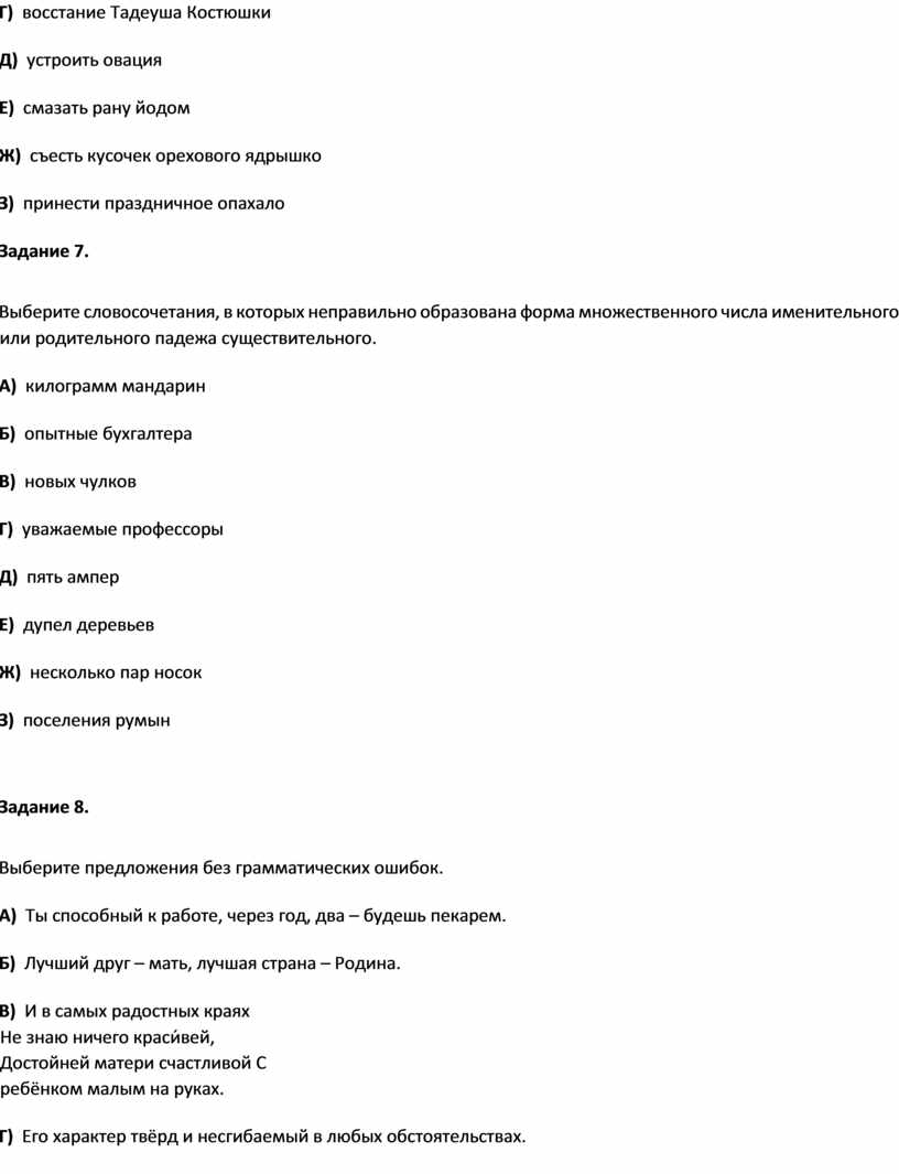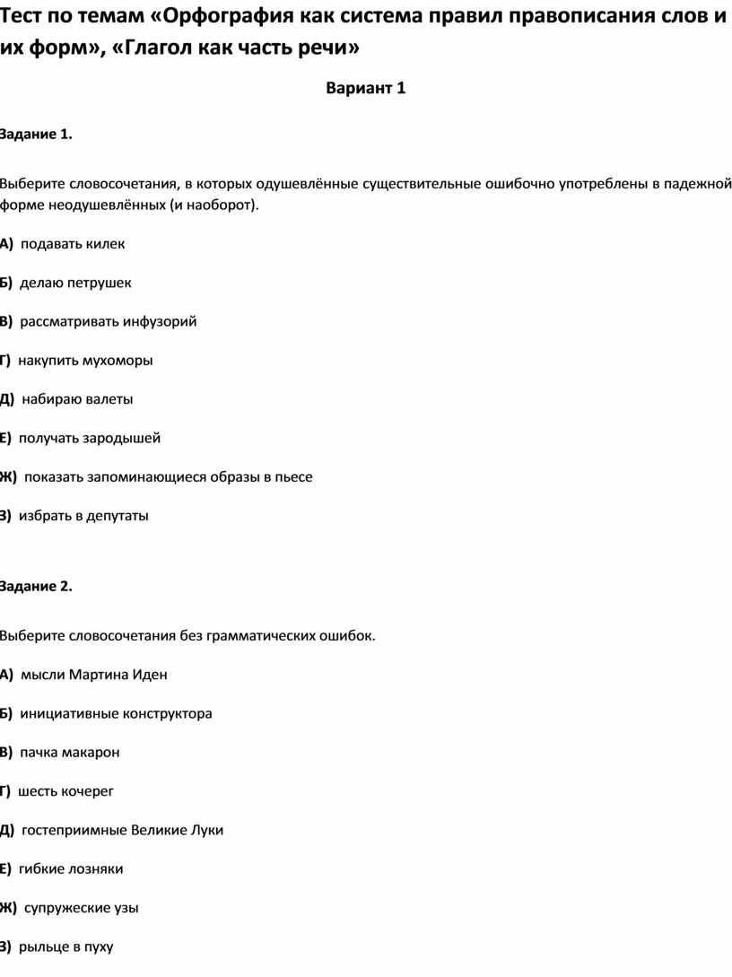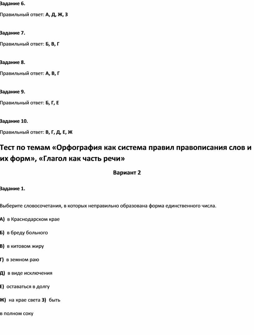 Тест по темам «Орфография как система правил правописания слов и их форм», «Глагол как часть речи»