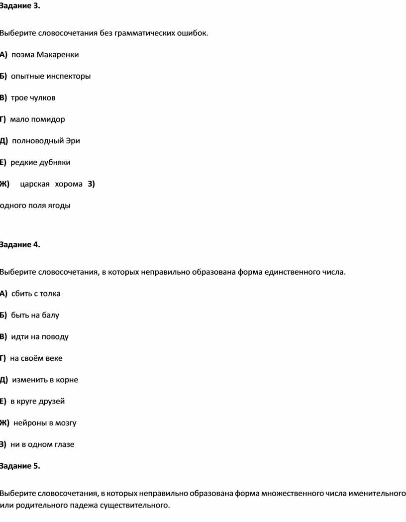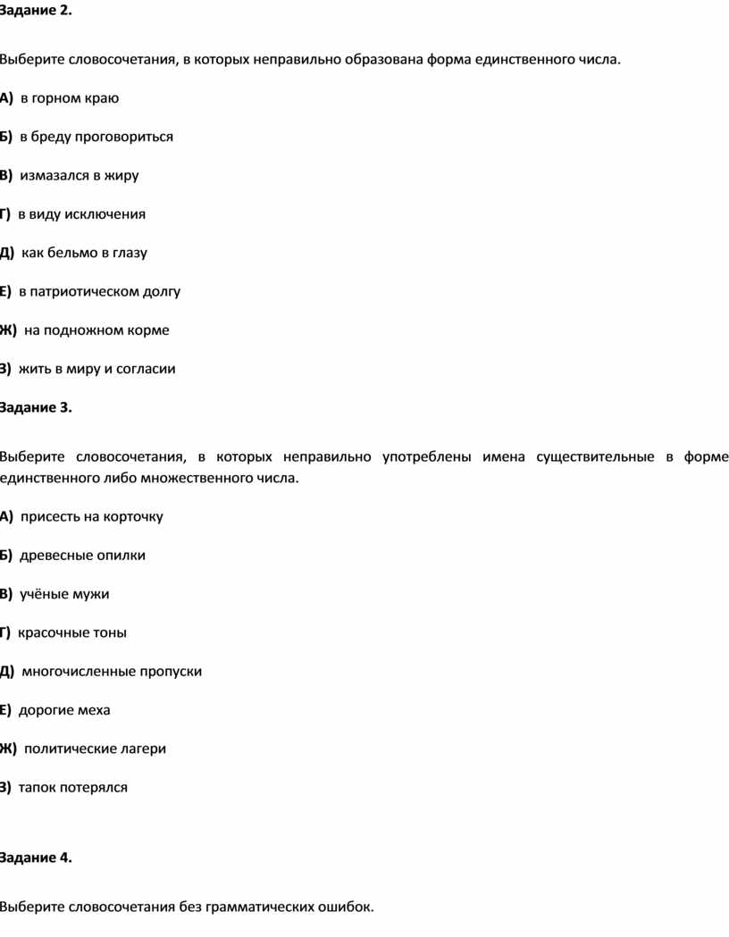 Выберите словосочетания, в которых неправильно употреблены имена существительные в форме единственного либо множественного числа.