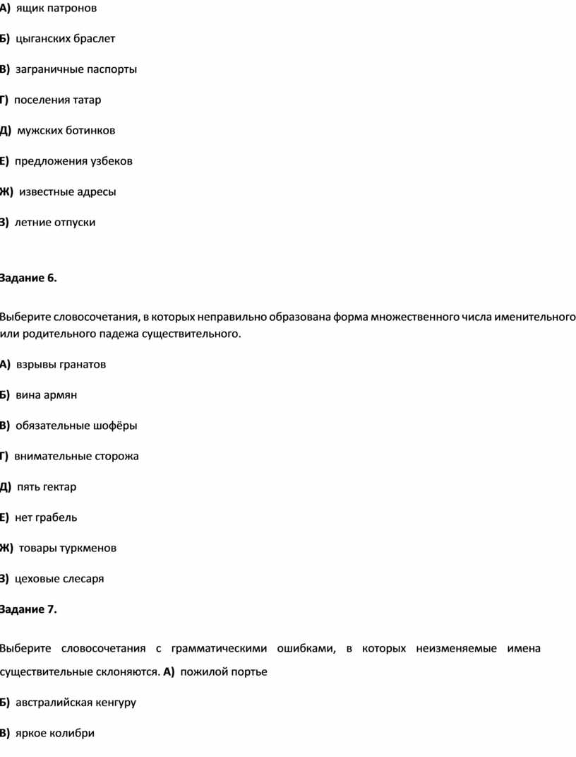Выберите словосочетания, в которых неправильно образована форма множественного числа именительного или родительного падежа существительного.