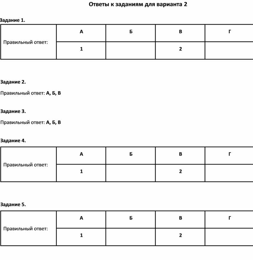 Задание 2. Правильный ответ: А, Б, В Задание 3. Правильный ответ: А, Б, В Задание 4. |