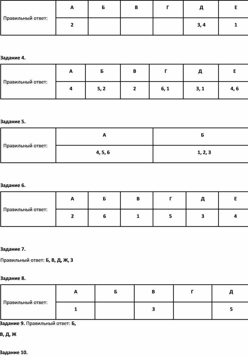 Задание 9. Правильный ответ: Б, В, Д, Ж