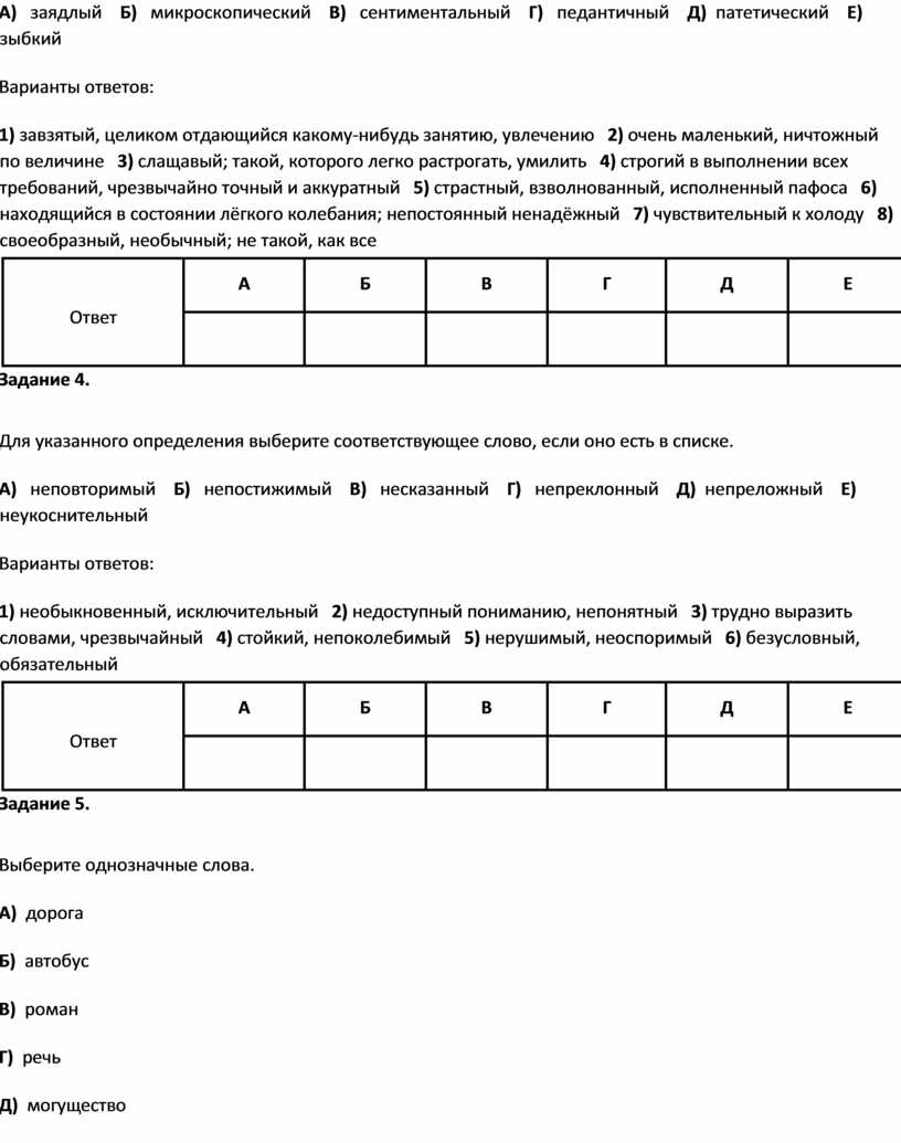 А) заядлый Б) микроскопический В) сентиментальный Г) педантичный Д) патетический Е) зыбкий