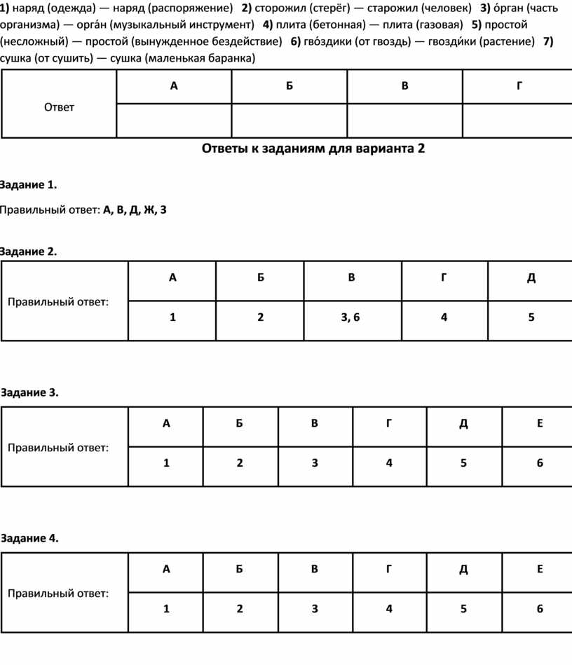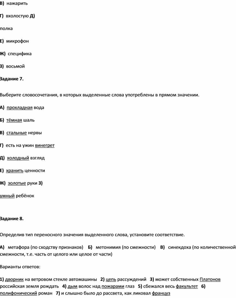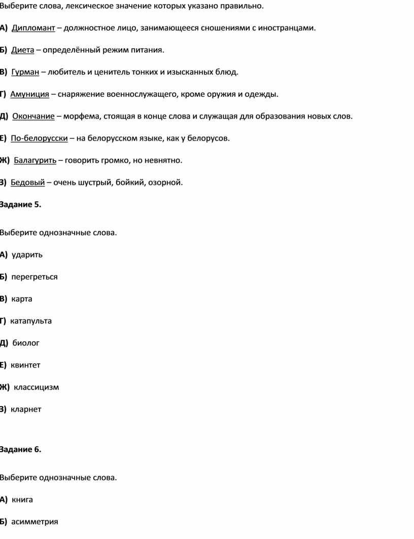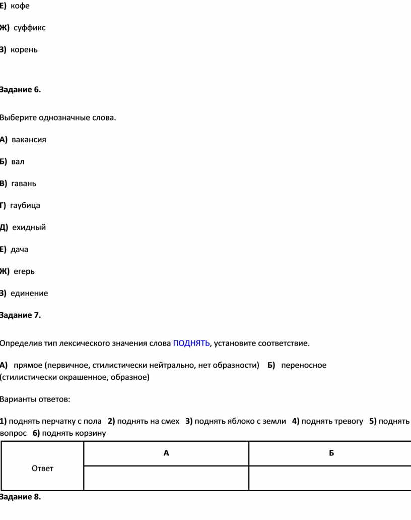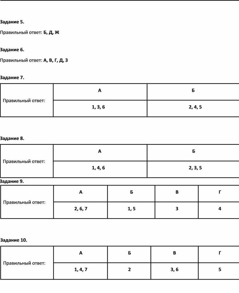 Задание 5. Правильный ответ: Б, Д, Ж Задание 6. Правильный ответ: А, В, Г, Д, З Задание 7. |