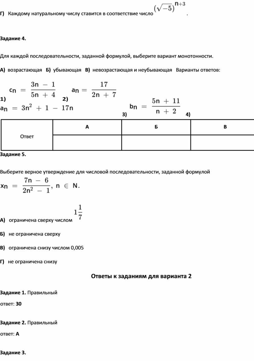 Для каждой последовательности, заданной формулой, выберите вариант монотонности.