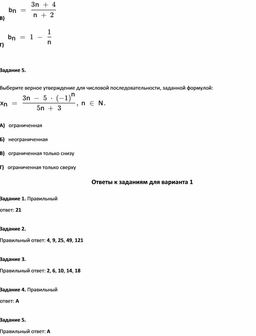 Выберите верное утверждение для числовой последовательности, заданной формулой: