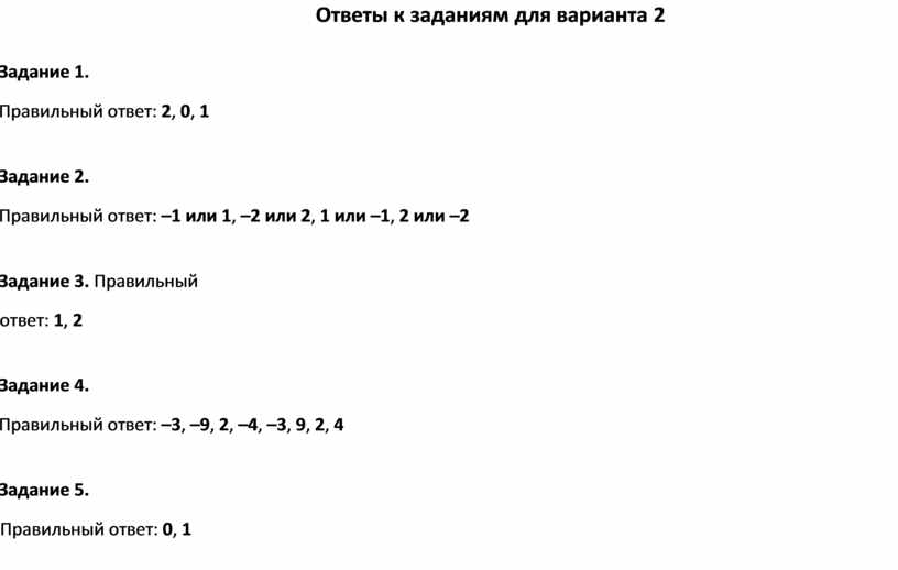 Правильный ответ: 2, 0, 1