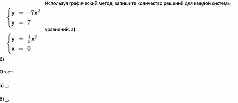 графический метод, укажите количество решений для каждой системы уравнений: а)