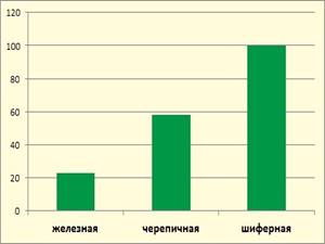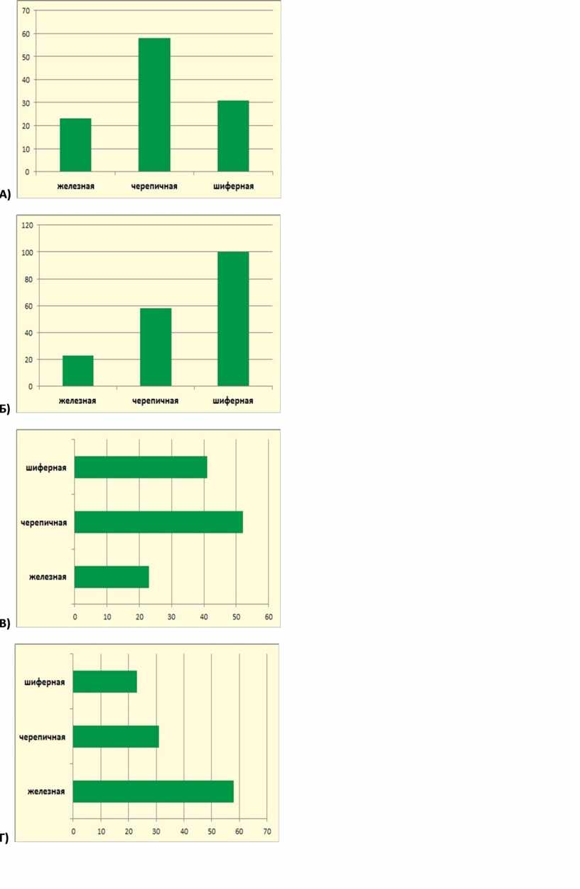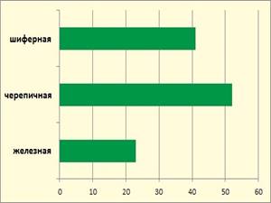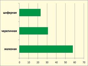 В деревне из 100 домов 15 под железной крышей, 55 под шиферной и 30 под черепичной. Выберите диаграмму, которая соответствует данному условию.