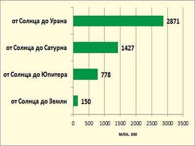 На диаграмме показано расстояние от Солнца до некоторых планет в млн км. С помощью диаграммы ответьте на вопросы: