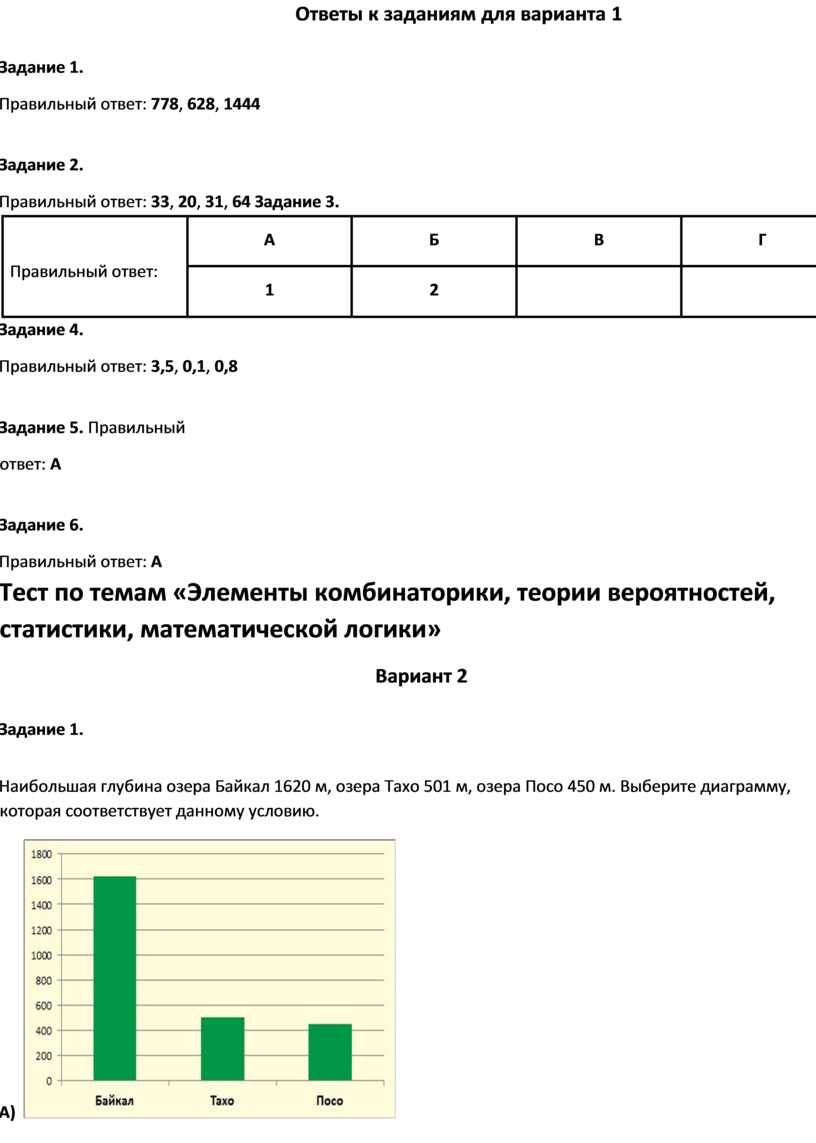 Тест по темам «Элементы комбинаторики, теории вероятностей, статистики, математической логики»