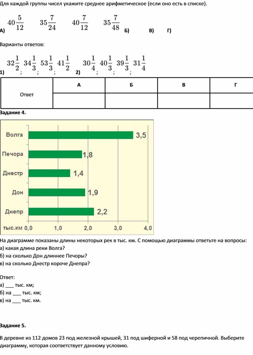 Для каждой группы чисел укажите среднее арифметическое (если оно есть в списке).