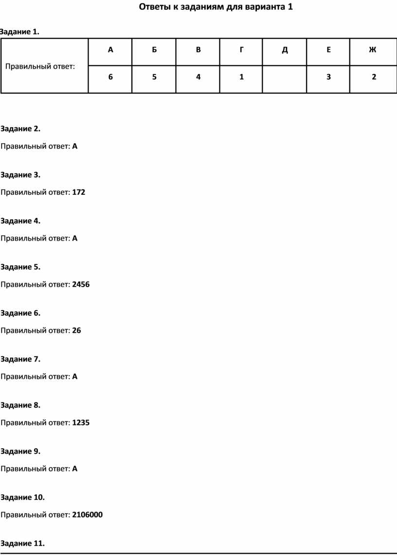 Задание 2. Правильный ответ: А Задание 3. Правильный ответ: 172 Задание 4. Правильный ответ: А Задание 5. Правильный ответ: 2456 Задание 6. Правильный ответ: 26 Задание 7. Правильный ответ: А Задание 8. Правильный ответ: 1235 Задание 9. Правильный ответ: А Задание 10. Правильный ответ: 2106000 Задание 11. |