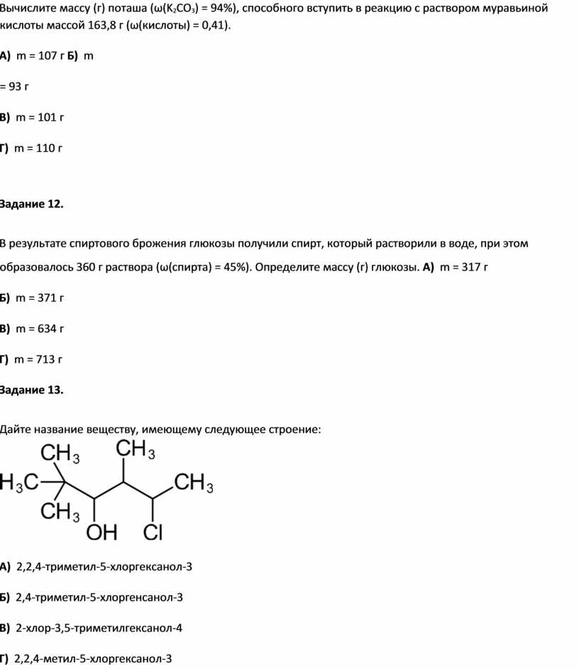 Вычислите массу (г) поташа (ω(K2CO3) = 94%), способного вступить в реакцию с раствором муравьиной кислоты массой 163,8 г (ω(кислоты) = 0,41).