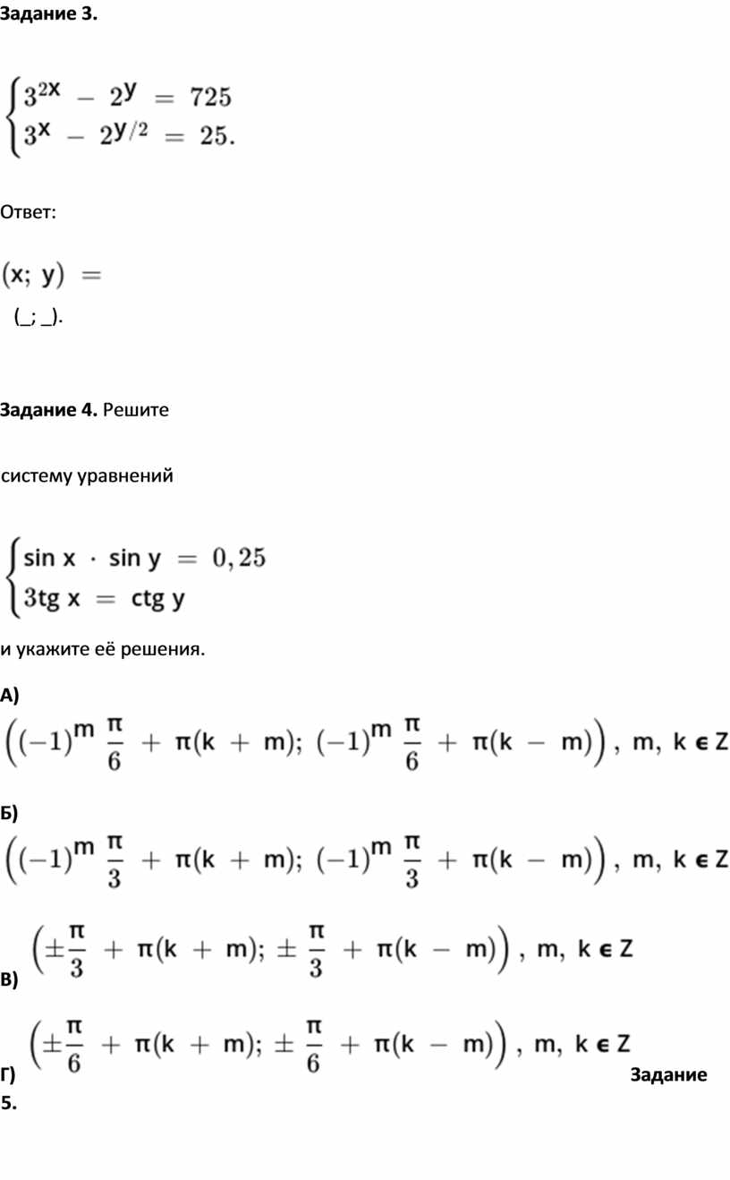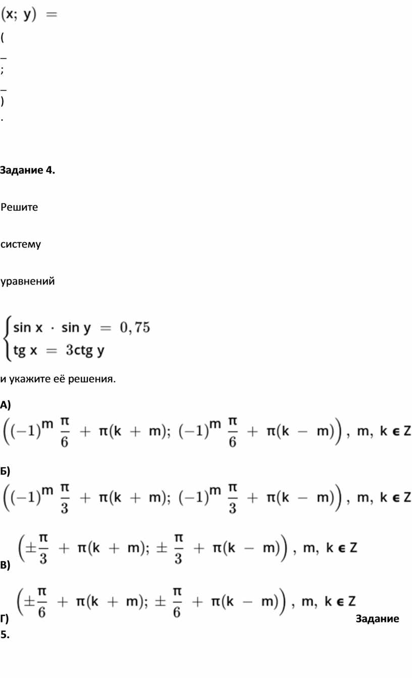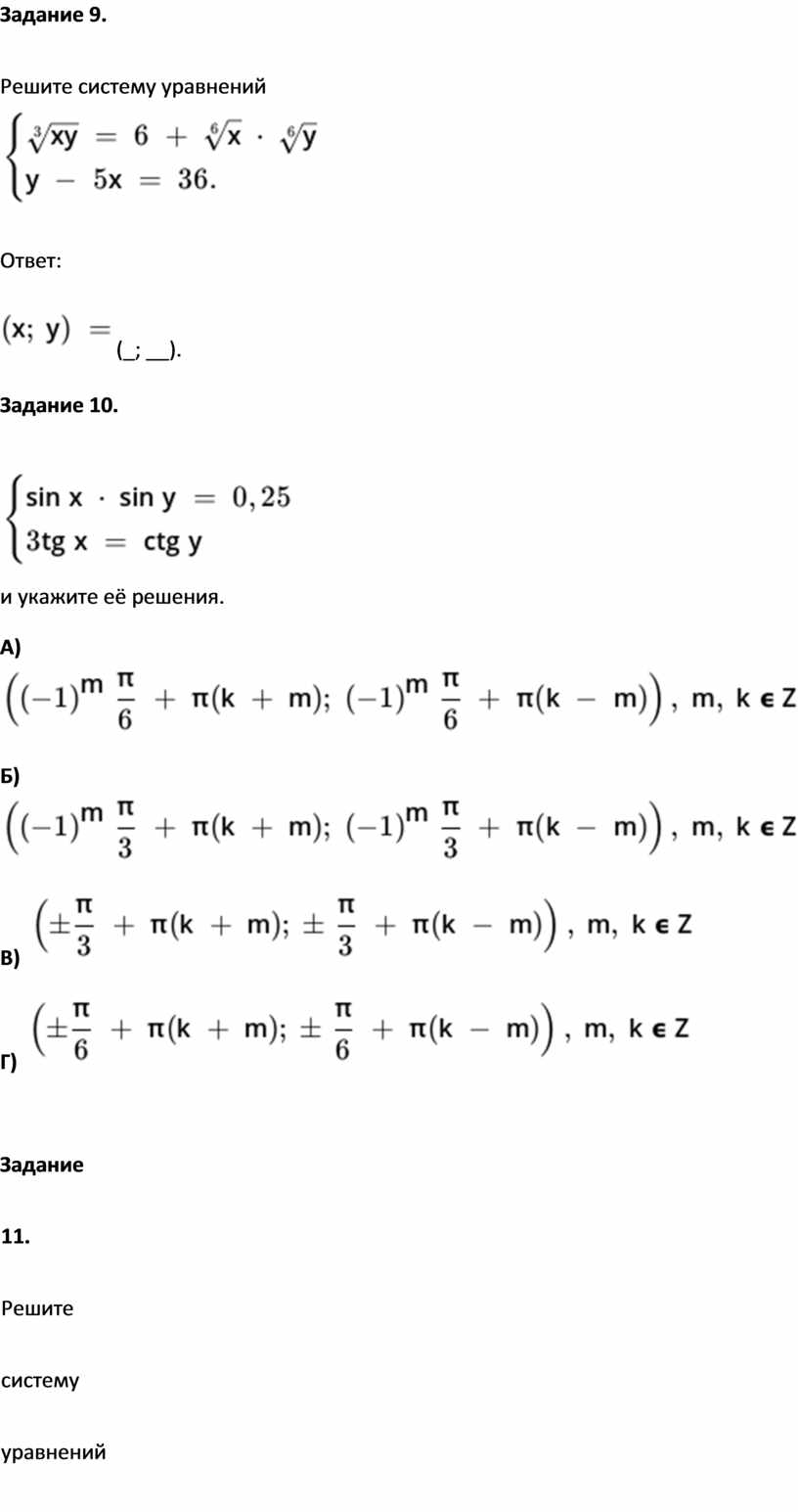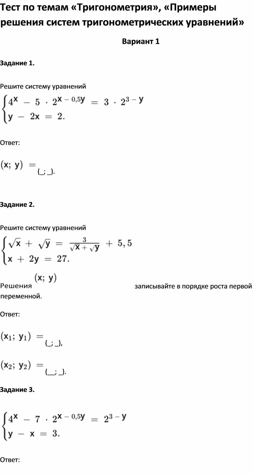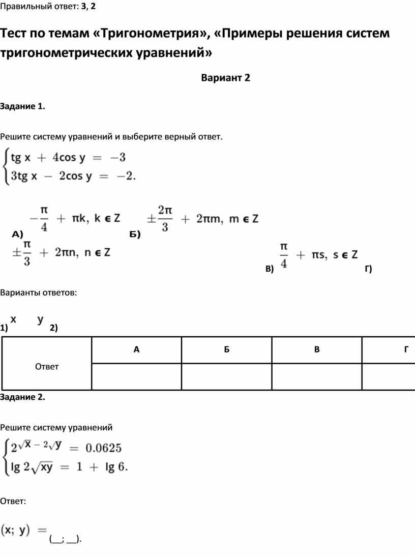 Тест по темам «Тригонометрия», «Примеры решения систем тригонометрических уравнений»