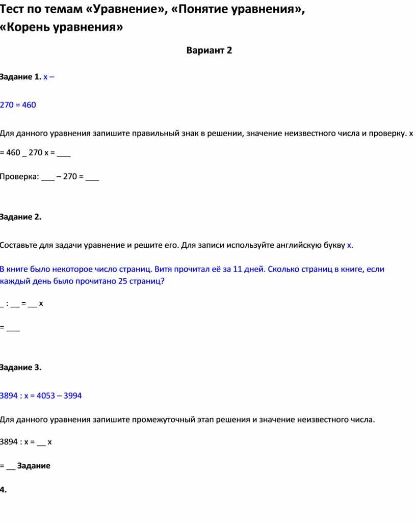 Тест по темам «Уравнение», «Понятие уравнения»,