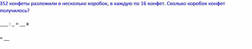 352 конфеты разложили в несколько коробок, в каждую по 16 конфет. Сколько коробок конфет получилось?