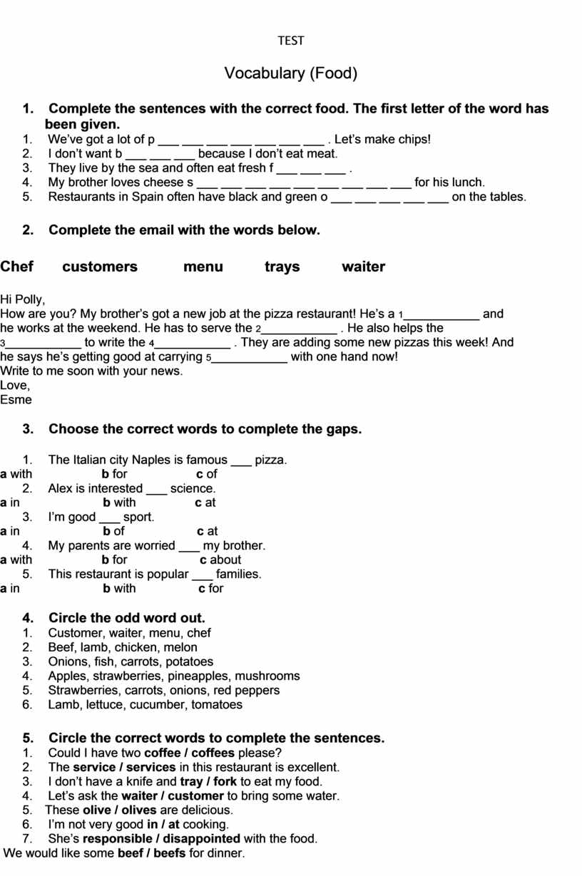 1. Complete the sentences with the correct food. The first letter of the word has been given.