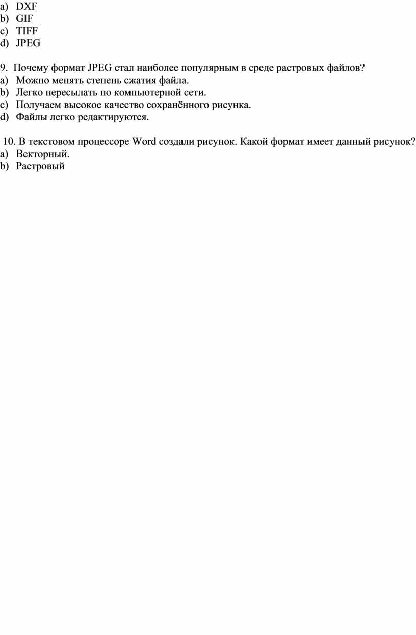 10. В текстовом процессоре Word создали рисунок. Какой формат имеет данный рисунок?