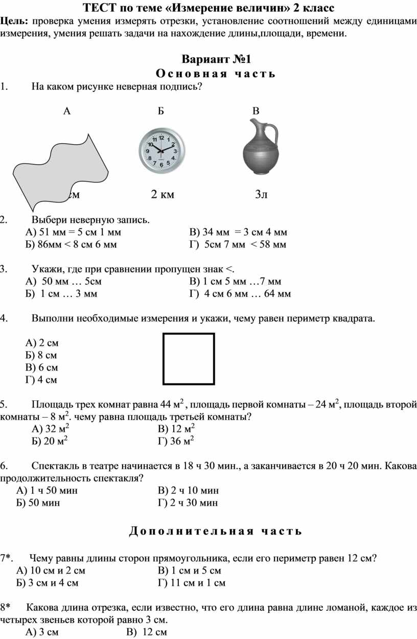 ТЕСТ по теме «Измерение величин» 2 класс