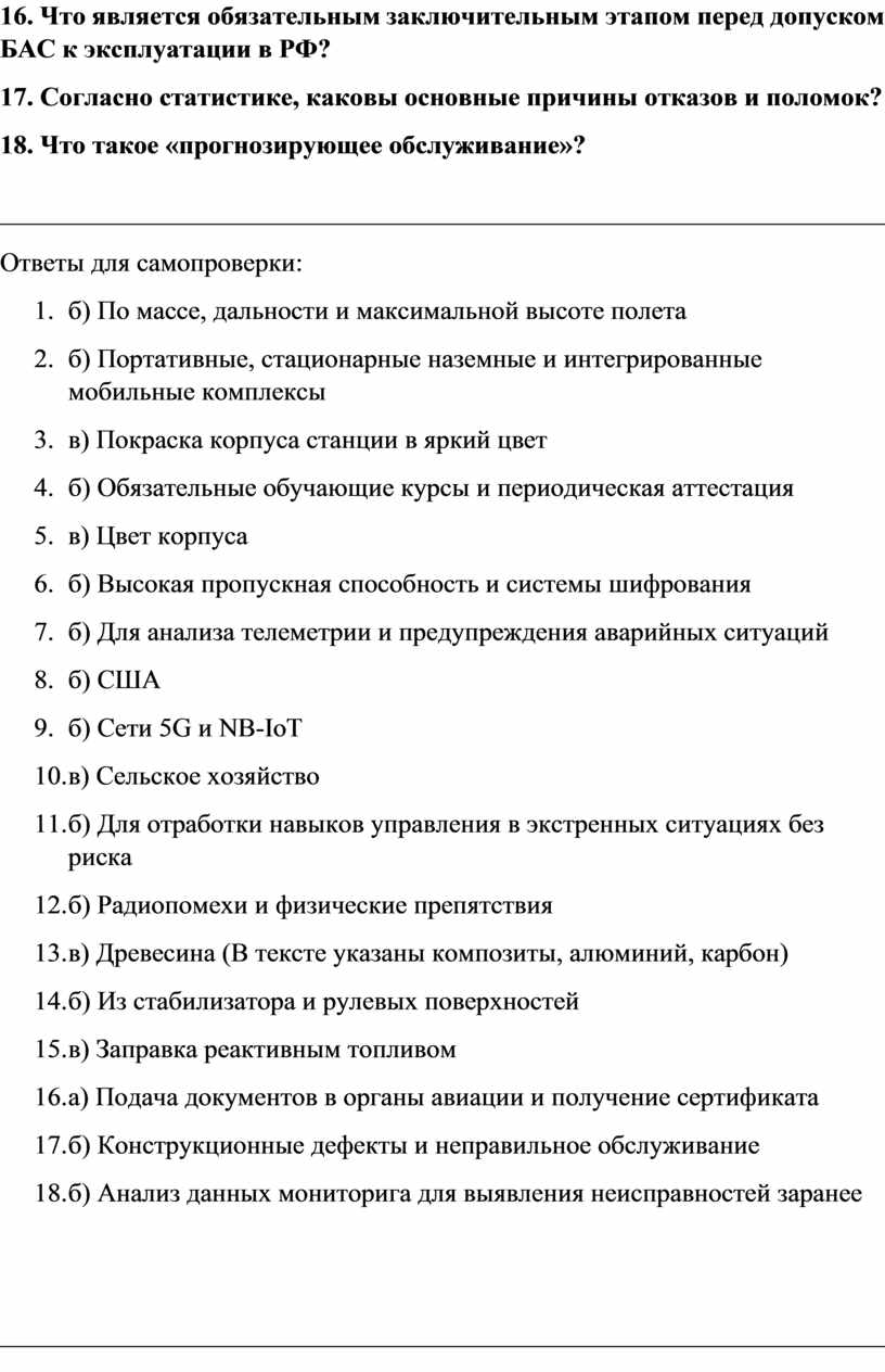 16. Что является обязательным заключительным этапом перед допуском БАС к эксплуатации в РФ?