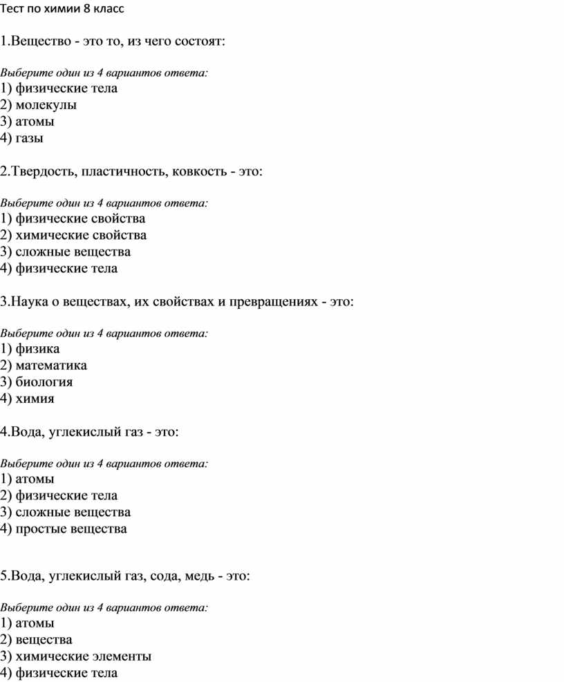 Тест по химии 8 класс
