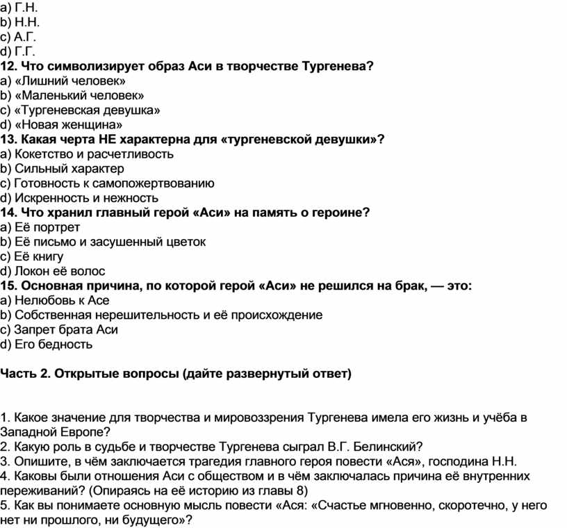 12. Что символизирует образ Аси в творчестве Тургенева?