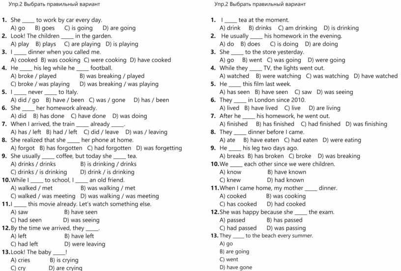Тест Вар 2 Present Simple, Present Continuous, Past Simple, Past Continuous, Present Perfect, Past Perfect