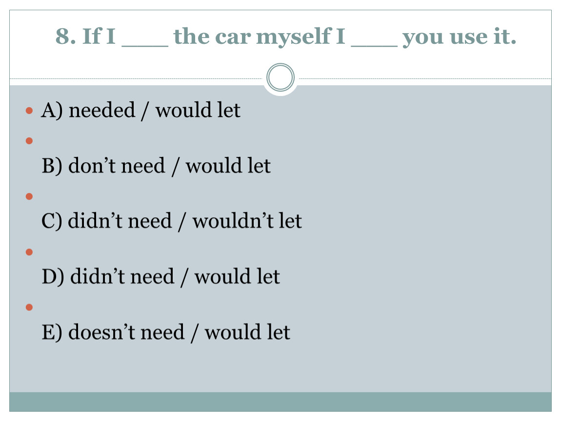8. If I ___ the car myself I ___ you use it.