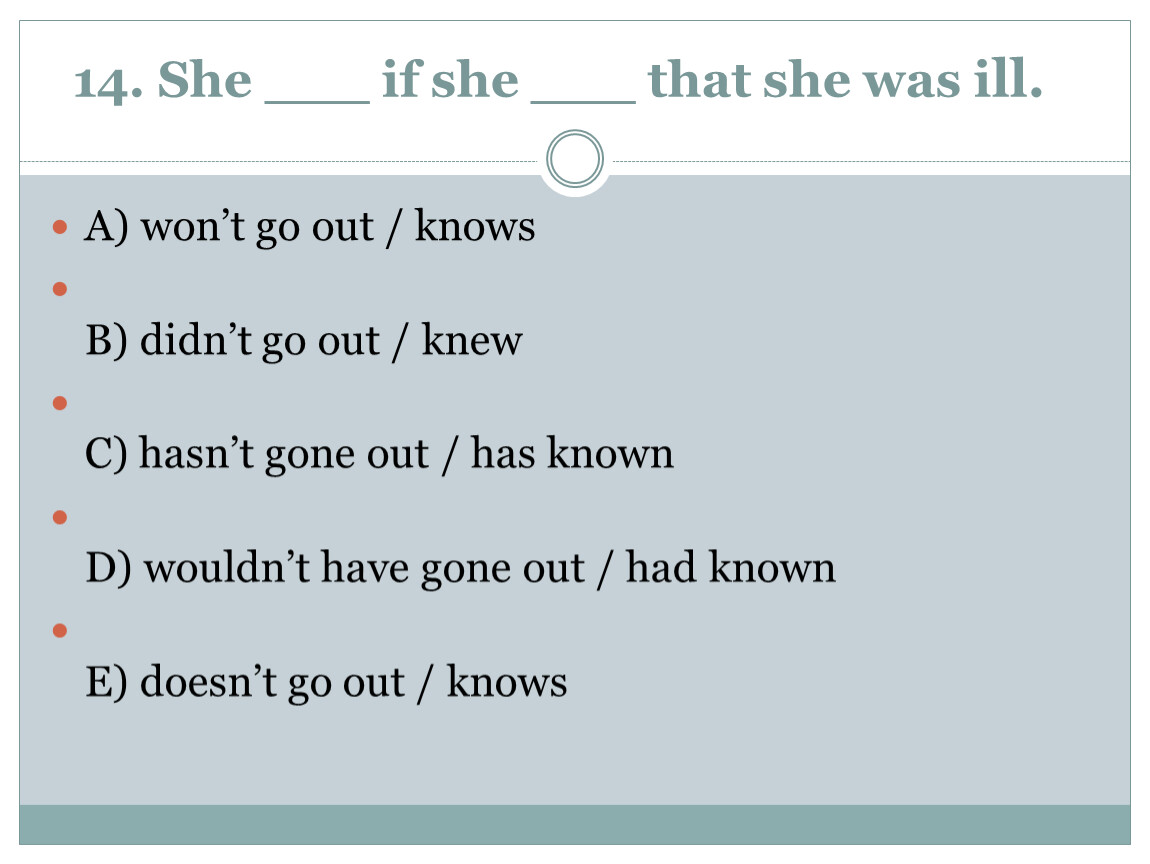 14. She ___ if she ___ that she was ill.