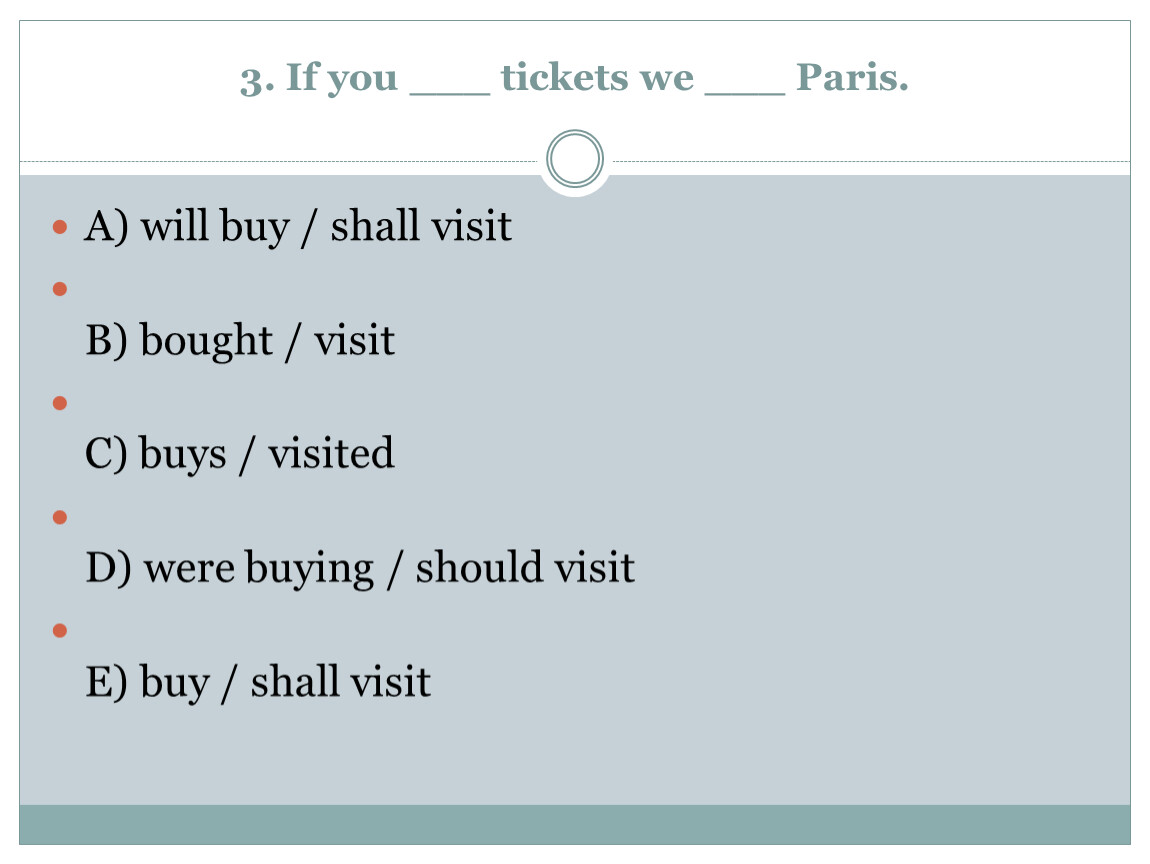 3. If you ___ tickets we ___ Paris.