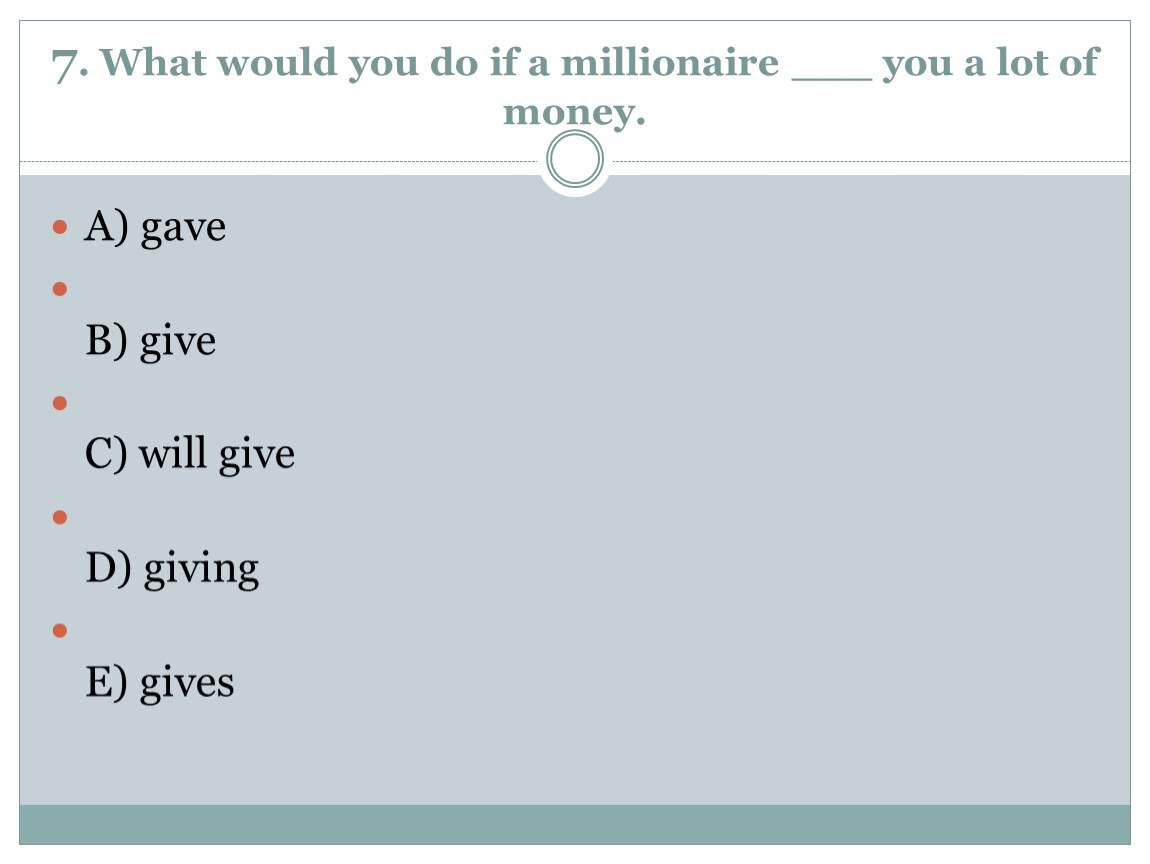 7. What would you do if a millionaire ___ you a lot of money.