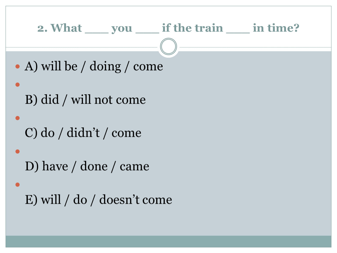 2. What ___ you ___ if the train ___ in time?