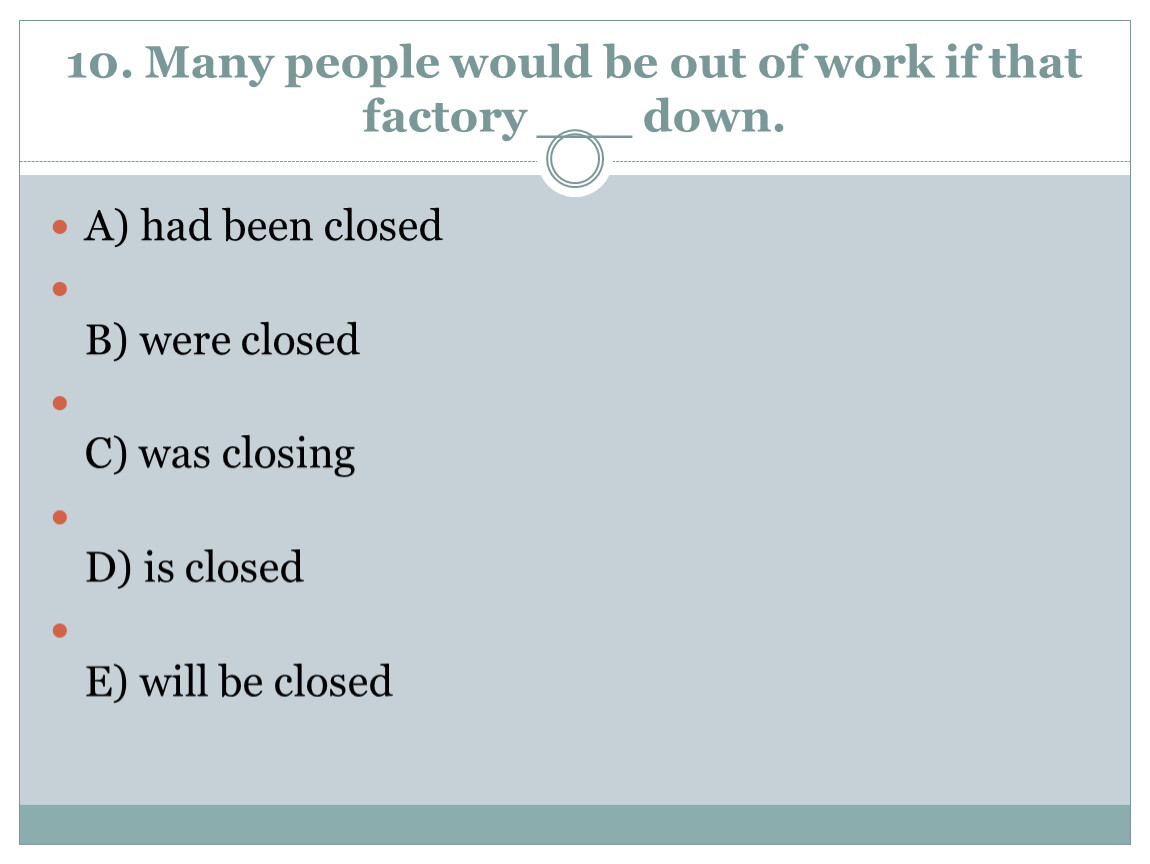 10. Many people would be out of work if that factory ___ down.