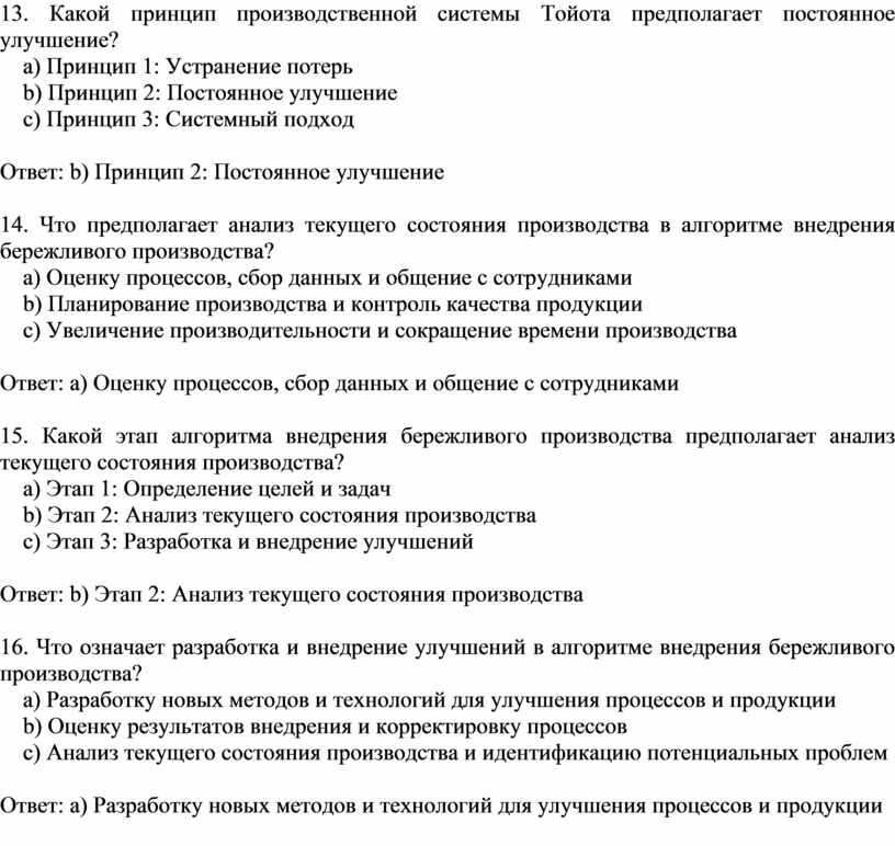 13. Какой принцип производственной системы Тойота предполагает постоянное улучшение?