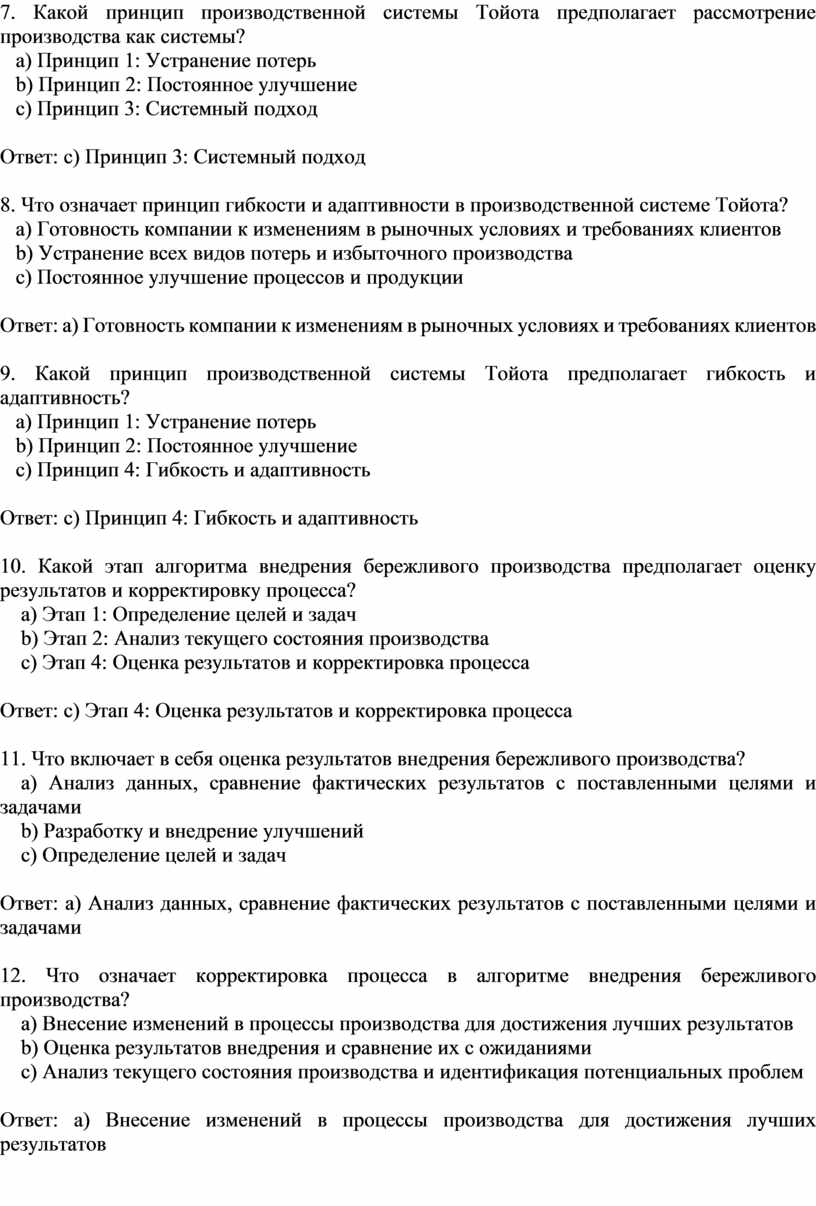 7. Какой принцип производственной системы Тойота предполагает рассмотрение производства как системы?
