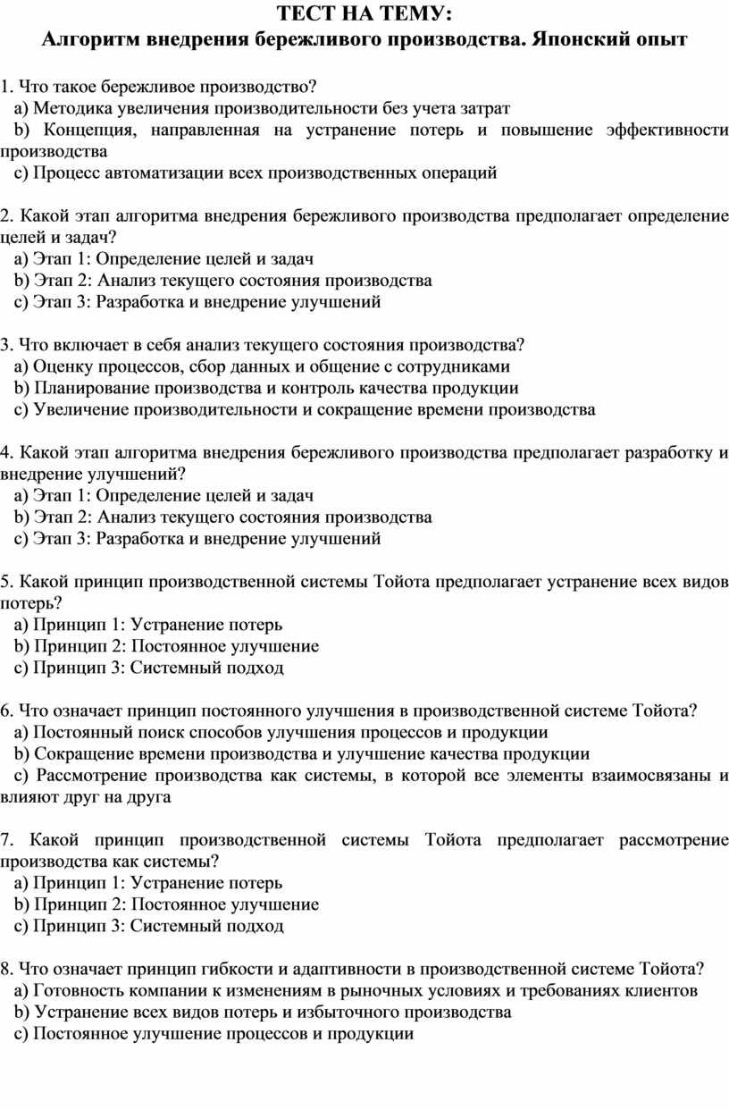 Ответ: b) Концепция, направленная на устранение потерь и повышение эффективности производства