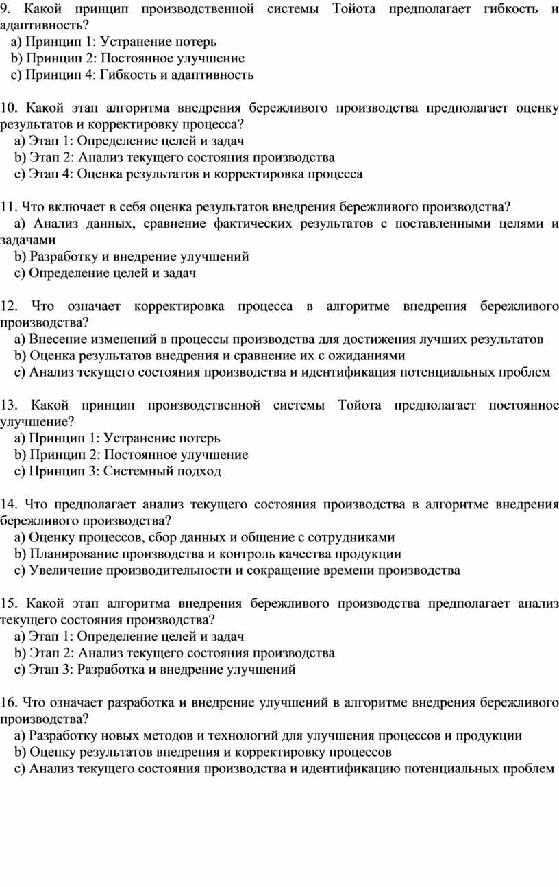 9. Какой принцип производственной системы Тойота предполагает гибкость и адаптивность?