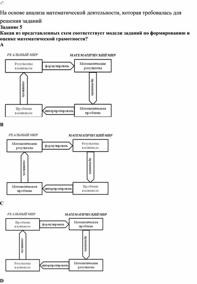 Какая из представленных схем соответствует модели заданий по формированию и оценке математической грамотности?
