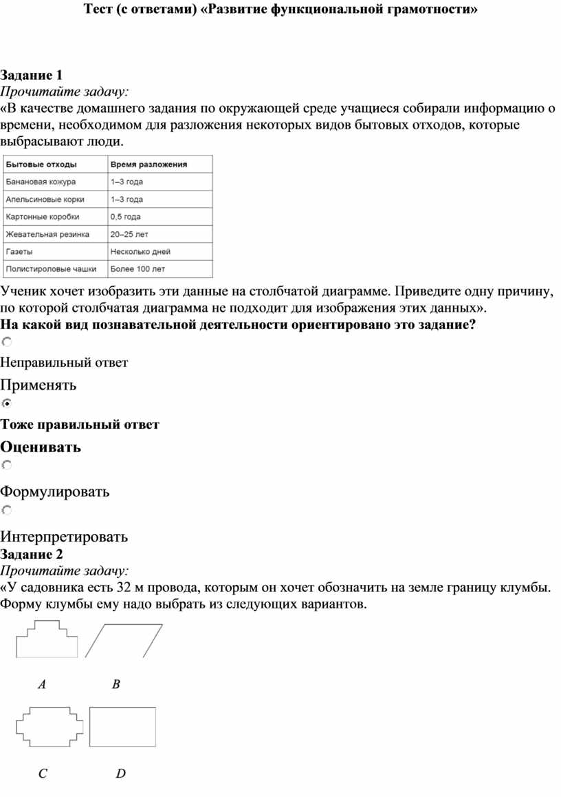 «В качестве домашнего задания по окружающей среде учащиеся собирали информацию о времени, необходимом для разложения некоторых видов бытовых отходов, которые выбрасывают люди.