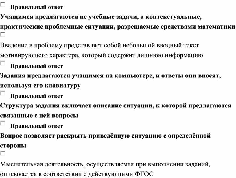 Мыслительная деятельность, осуществляемая при выполнении заданий, описывается в соответствии с действующими ФГОС