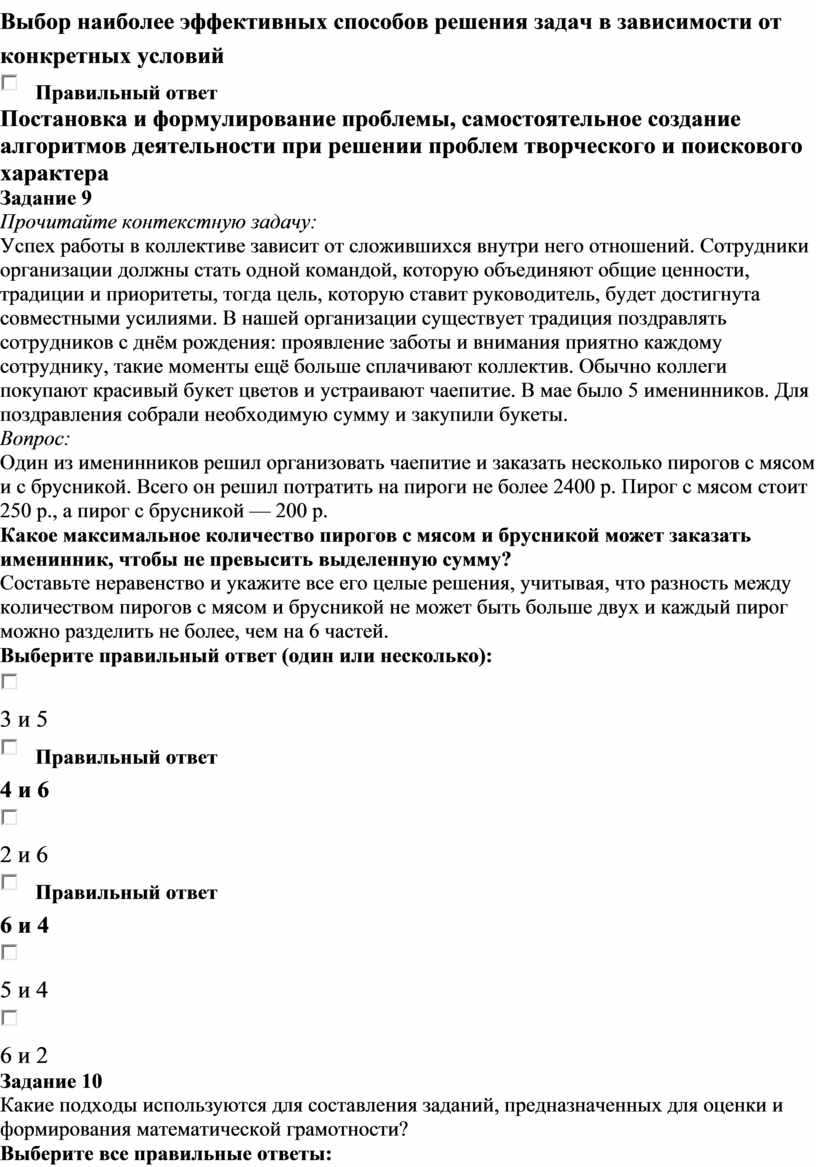 Выбор наиболее эффективных способов решения задач в зависимости от конкретных условий