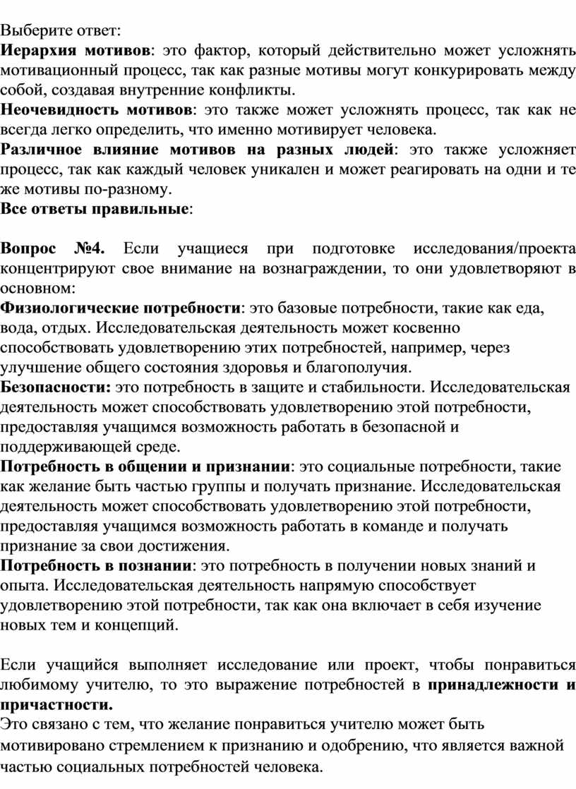 Потребность в общении и признании: это социальные потребности, такие как желание быть частью группы и получать признание. Исследовательская деятельность может способствовать удовлетворению этой потребности, предоставляя учащимся возможность работать в команде и получать признание за свои достижения.