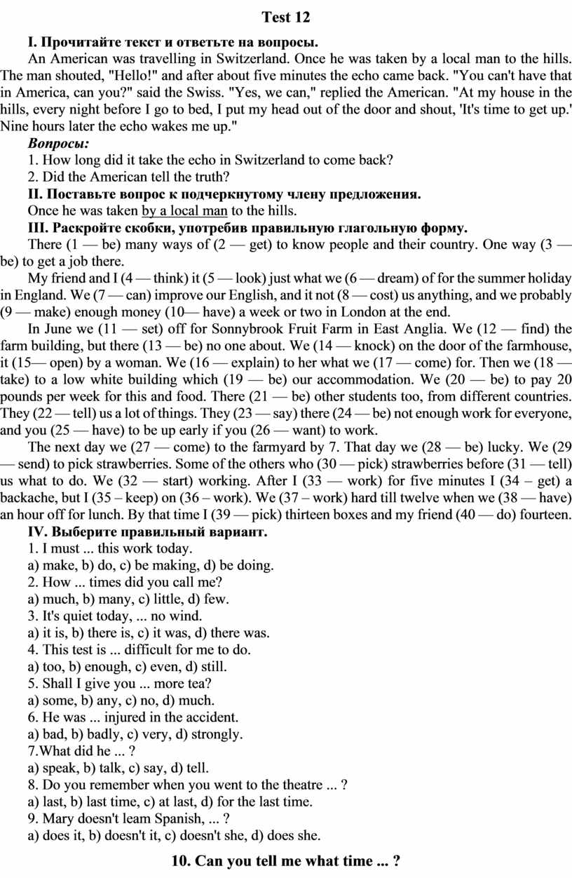 In June we (11 — set) off for Sonnybrook Fruit Farm in East Anglia. We (12 — find) the farm building, but there (13 — be) no one about. We (14 — knock) on the door of the farmhouse, it (15— open) by a woman. We (16 — explain) to her what we (17 — come) for. Then we (18 — take) to a low white building which (19 — be) our accommodation. We (20 — be) to pay 20 pounds per week for this and food. There (21 — be) other students too, from different countries. They (22 — tell) us a lot of things. They (23 — say) there (24 — be) not enough work for everyone, and you (25 — have) to be up early if you (26 — want) to work.