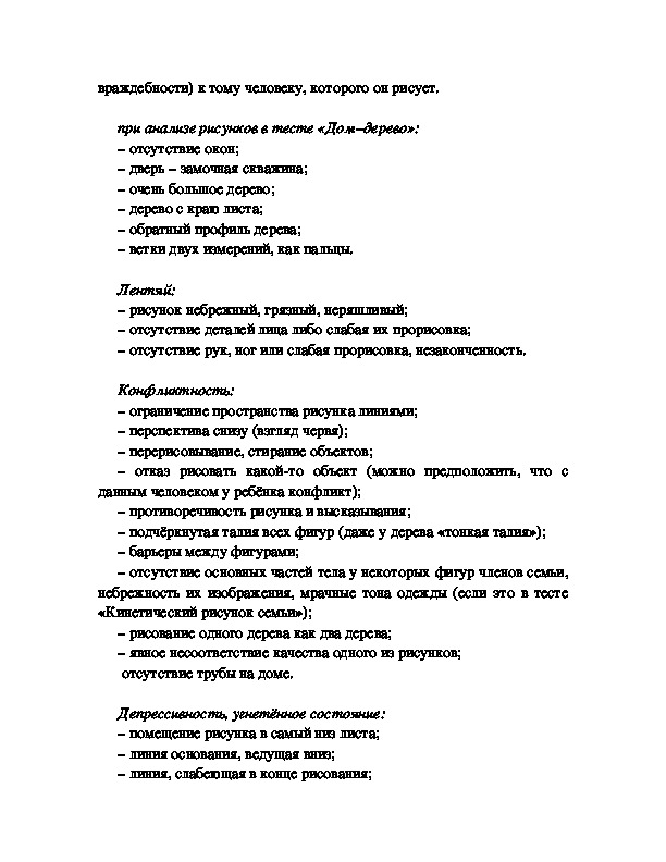 (агрессивности,враждебности) к тому человеку, которого он рисует.